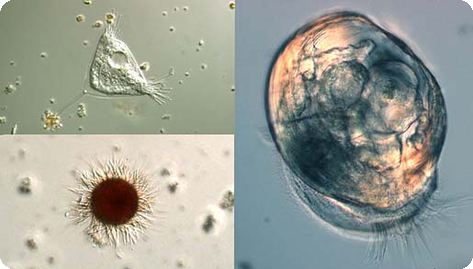 Plankton is de verzamelnaam voor alle vrij in het water zwevende organismen. Het zoöplankton is het dierlijke deel hiervan. Planktondiertjes kunnen zich wel verplaatsen, maar zijn niet sterk genoeg om tegen de stroom in vooruit te komen. Tot het dierlijk plankton behoren microscopisch kleine ééncelligen, maar ook veel grotere dieren zoals kwallen.Ook de vrij zwevende larven van vissen en andere grotere zeedieren behoren tot het dierlijk plankton. Driekwart van de planktonbiomassa in de Noordzee bestaat uit roeipootkreeftjes. Planktondieren zijn er in vele soorten en maten. De kleinste diertjes bestaan uit één cel. Met het blote oog zijn ze niet te zien, maar onder de microscoop zijn hun prachtige vormen wel te bewonderen. De ééncellige trilhaar- of wimperdiertjes (ciliaten) vormen binnen het dierlijk plankton in de kustwateren de groep met de grootste aantallen. Maar niet al het zoöplankton is zo klein. roeipoorkreeftjes en larven van vissen en bodemdieren kunnen een paar millimeter groot worden. Krill bestaat uit garnaal-achtige diertjes van ongeveer drie centimeter lang. In de oceanen vormen zij het belangrijkste voedsel voor veel walvissen. kwallen worden nog veel groter: sommige soorten kunnen een diameter van meer dan 1 meter bereiken.